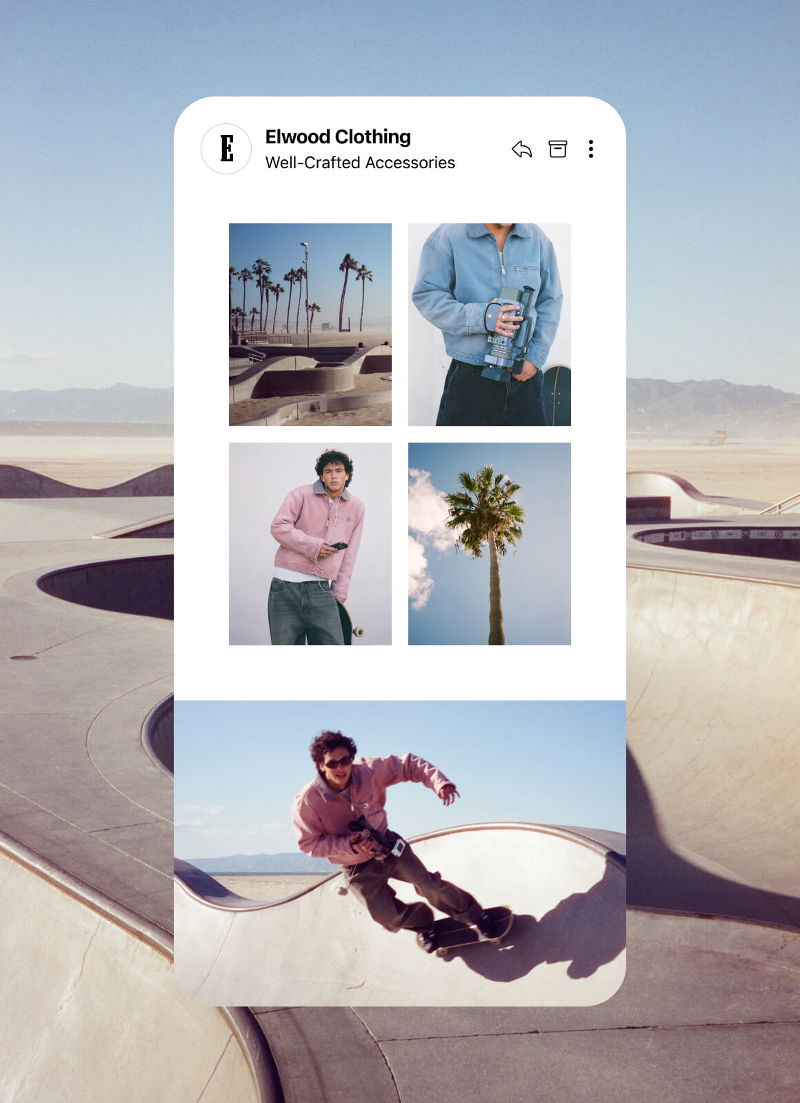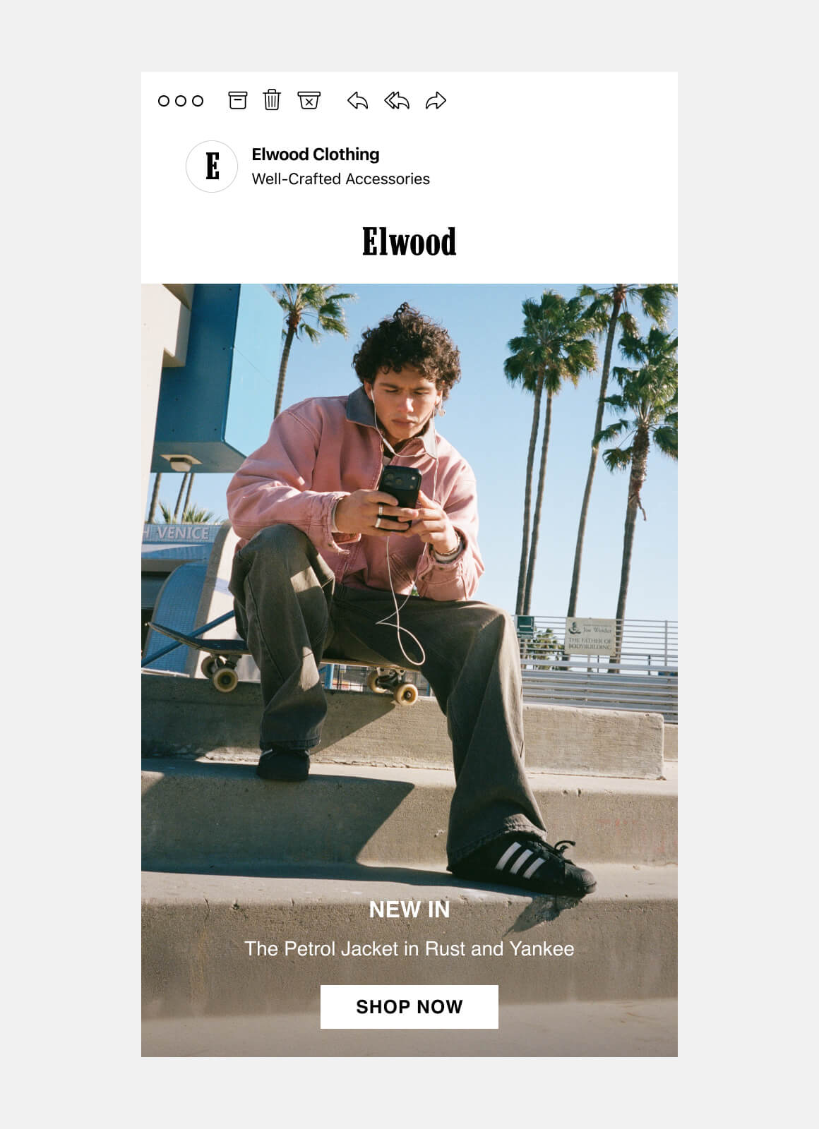 I joined Elwood as a freelance contributor supporting email and lifecycle marketing. I design campaign touchpoints that bring Elwood’s point of view into the inbox, maintaining editorial integrity while reinforcing cultural relevance and momentum. From launches and lifecycle moments to evergreen components, I shape creative, A/B test details like layout and copy treatment, and refine what performs for future drops.
